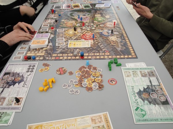 Evidemment, j’ai passé le plus clair de mon temps entre les stands éditeurs et les jeux de demain. A mon grand regret, je n’ai pas eu le temps de tester un seul jeu mais j’ai pu assister à des bouts de règles et quelques jeux sont ressortis dont Spyrium (par le créateur de Caylus, bientôt édité chez Ystari) et Yedo (Iello).