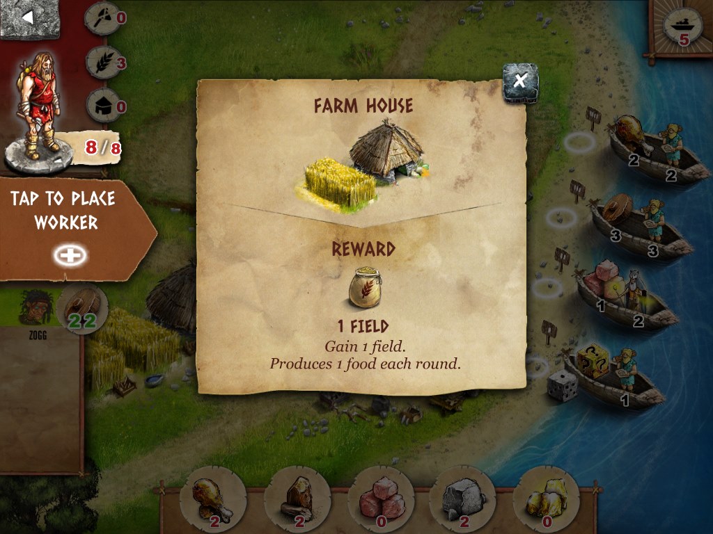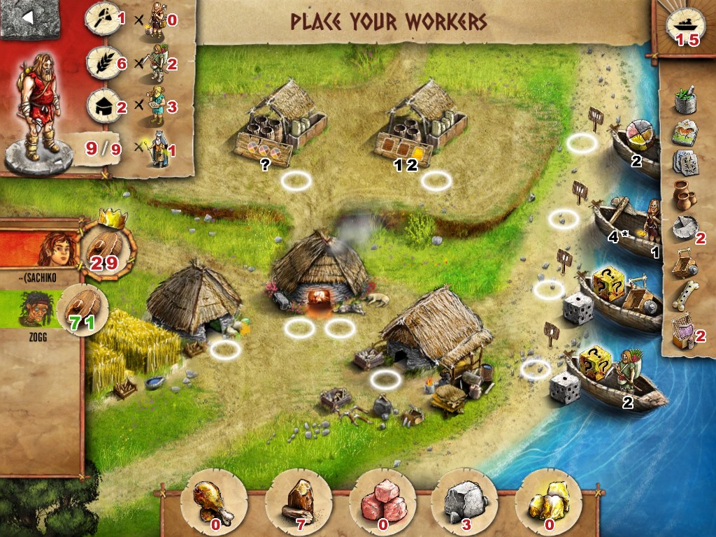 Mais voilà, quand on part en vacances, il est impossible de déplacer sa ludothèque, j’ai donc décidé d’installer 2 jeux sur iPad avant de partir : Stone Age et Puerto Rico. Mais parlons de Stone Age, mon jeu le plus joué !!!