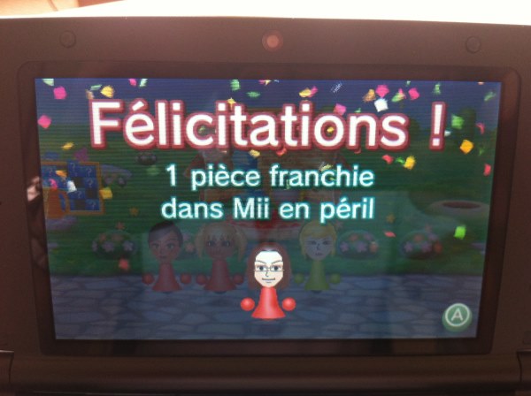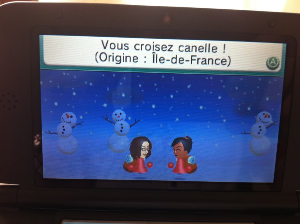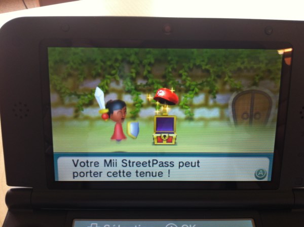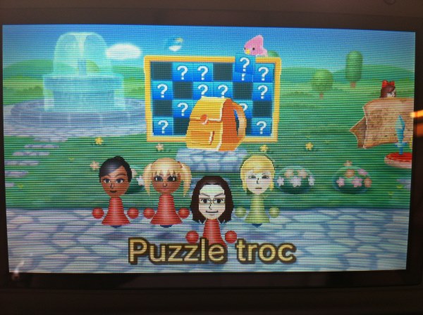 Car en effet StreetPass permet à votre console (en veille) de communiquer avec d’autres consoles DS et d’échanger des Mii. Ces Mii partagés jouent à des jeux, partagent quelques pièces de puzzles contre des objets en jeux. C’est ainsi que ce matin, console en veille, j’ai pu croiser le chemin de Elhyel (ma première rencontre !!!) et ce midi 3 autres personnes.