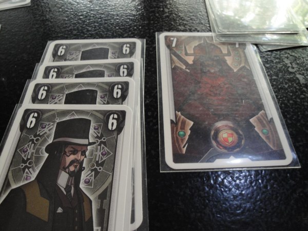• Ordre : chaque joueur va choisir de jouer autant de cartes qu’il le souhaite (et les posera face cachée devant lui) mais la condition c’est que les cartes doivent être identiques (le joueur peut donc choisir de jouer 3 cartes du personnage « banquier » portant le n° 6, ou bien 2 cartes « barbare » qui est un événement mais ne pourra pas choisir le banquier et l’événement (sauf s’il a le pouvoir de le faire)