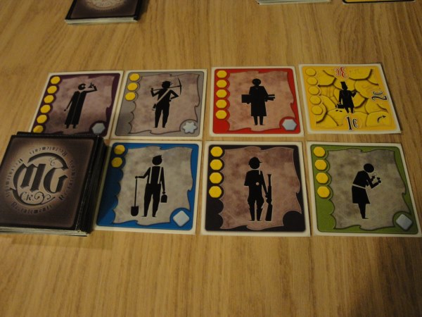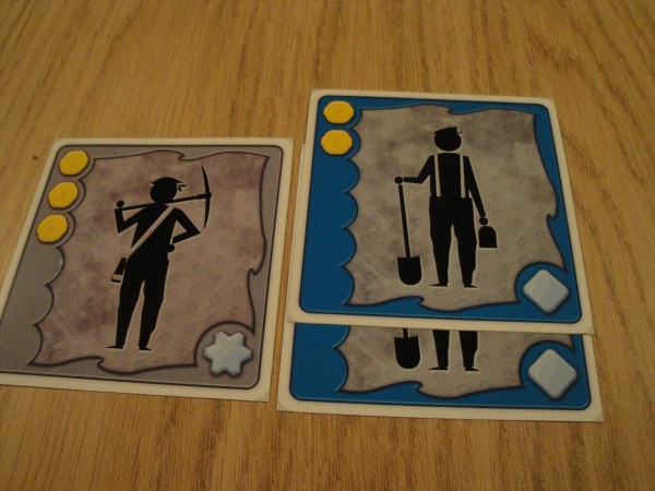 - les cartes « recrutements » de plusieurs catégories (représentées par des formes) : Ouvriers, Mineurs, Milices, Géologues, Contremaîtres …