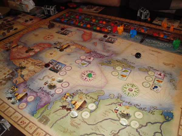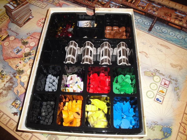 Le 1er novembre dernier, en plus de Russian Railroads, Nicolas nous a proposé Francis Drake. Un jeu retraçant le parcours de Drake et donc, permettant à chaque joueur de monter 3 voyages à travers la mer des caraïbes pour y voler les gemmes en gagnant des batailles ou bien pour y faire du commerce. Ce jeu de société propose exclusivement de la pose d’ouvriers.