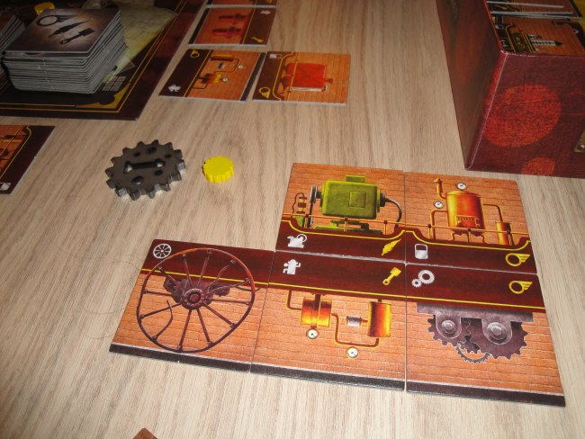 Arrivé à l’atelier, vous disposez (suivant l’ordre de votre pion) de plusieurs actions : construire 1 pièce pour 1 action ou réparer des pièces défectueuses (si vous avez la tuile correspondante) pour 1 action. Evidemment il ne faudra pas oublier les investisseurs (piochés en début de partie) et tenter de s’approcher de ce qu’ils demandent.