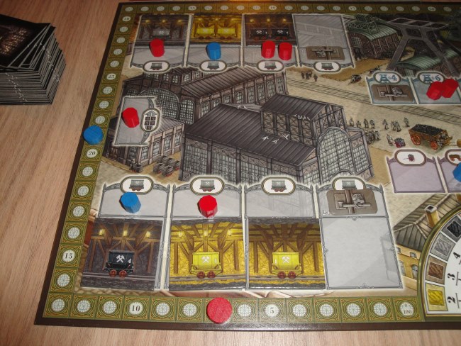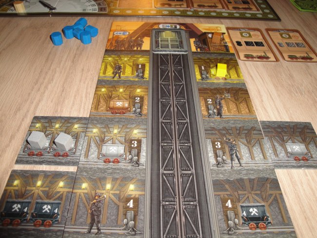 Chaque joueur dispose donc de sa mine et de ses ouvriers qu’il pourra à son tour placer à 5 endroits différents :