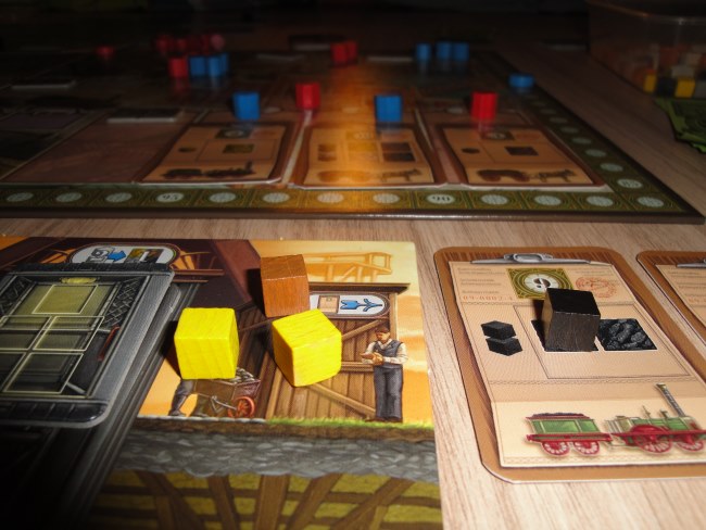 Propriétaires chacun d’une mine de charbon, les joueurs vont tenter de satisfaire les commandes avec le moyen de transport approprié. Le gagnant sera désigné par des points de victoire pas si faciles à gagner comme on pourrait le laisser croire. En effet, ce jeu de pose d’ouvriers ne réinvente rien, mais en rajoutant un peu de mémoire il est bien plus attractif pour les gros joueurs.