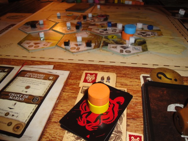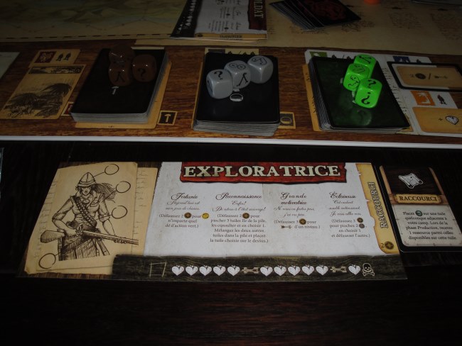 Autour de la table, déjà, tout le monde a apprécié choisir son personnage : j’ai pris l’exploratrice par exemple. Ensuite tout le monde a participé activement à l’élaboration des actions. Autant dans Pandémie, un leader se dégageait du groupe, autant là, les choix ne sont pas si faciles et demandent donc plusieurs cerveaux travaillant ensemble pour profiter au mieux de l’aventure et ainsi remporter la partie.