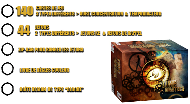 Dans Time Masters, vous participez, en tant que mage, au tournoi des Maîtres du Temps dont le but est de modifier le temps en dépensant au mieux des portions de journée (appelées Ké, un peu le principe du mana pour les joueurs de jeux vidéo). Mais chaque joueur en début de partie est un mage débutant, et oui, il va falloir apprendre à tordre le temps.