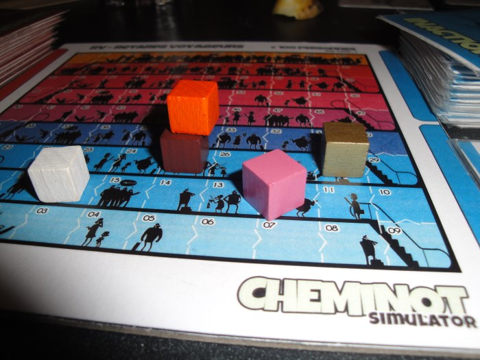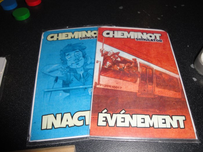 Cheminot Simulator est un jeu de cartes qui propose aux joueurs d’incarner des conducteurs de train dont le but est de mettre en retard le plus de voyageurs tout en travaillant le moins. (roh la la que c’est honteux! Mais on aime ça!)