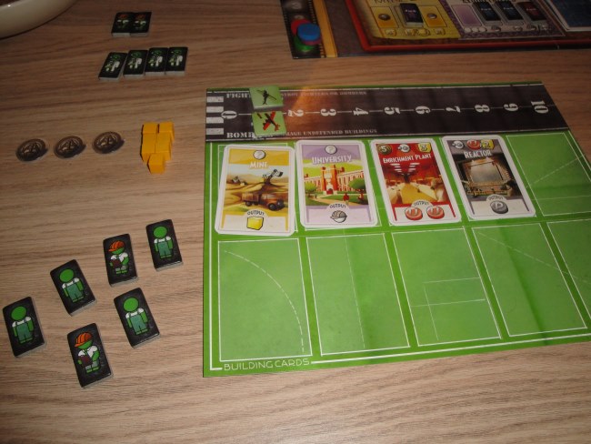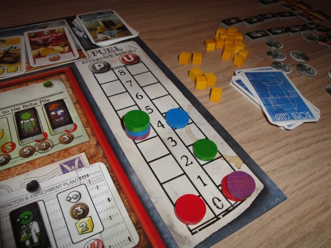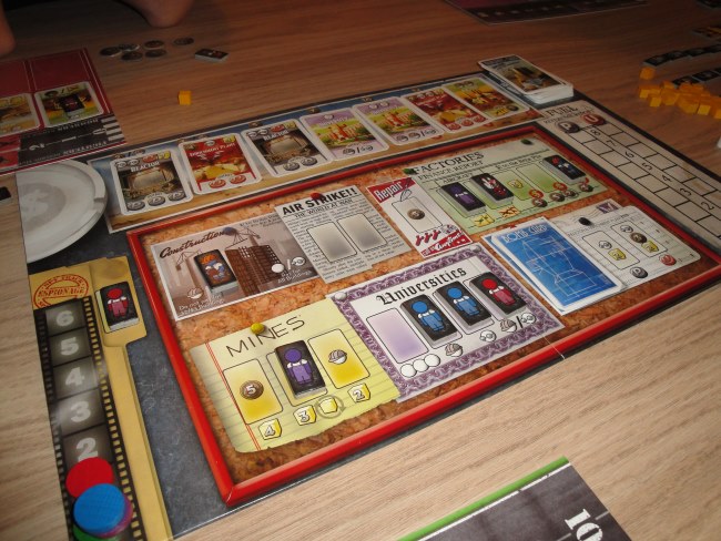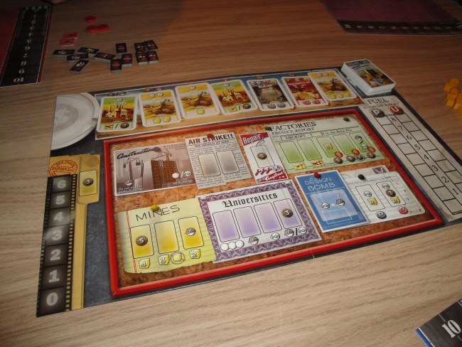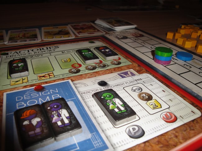 Découvert ce week-end pour démarrer la nouvelle année, the Manhattan Project propose aux joueurs une course à l’armement… En raison du thème au goût douteux et très discutable (je pense), seule la VO est disponible, les règles sont donc en anglais.