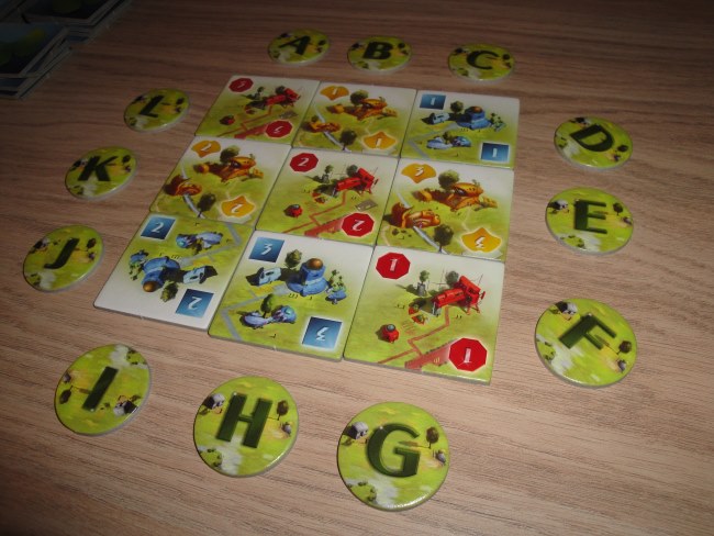 L’ingéniosité repose dans le fait que les bâtiments (tuiles) recouverts ont leur correspondance en carte (c’est ce qui permet de les recouvrir) que l’on garde près de soi pour apporter quelques pouvoirs supplémentaires.