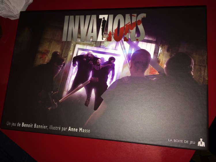 Invazions est un jeu de cartes coopératif avec affrontement. Je m’explique : les joueurs vont choisir leur camp entre humains et zombies, mais un seul joueur peut jouer humains. Donc le reste des joueurs jouent les zombies. Et oui humains contre zombies : l’éternel thème à la mode.