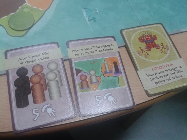 Au tout début d’une partie d’Origin, on est un peu perdu… un peu comme le 1er Homme se demandant vers quelle direction migrer pour pouvoir survivre. Ce sentiment est normal car, en début de partie, vous n’avez pas de but précis. Il vous faudra donc au plus vite tenter de conquérir des territoires violets offrant de précieuses cartes Objectifs. Et là, telle la découverte du feu, tout s’éclaire :