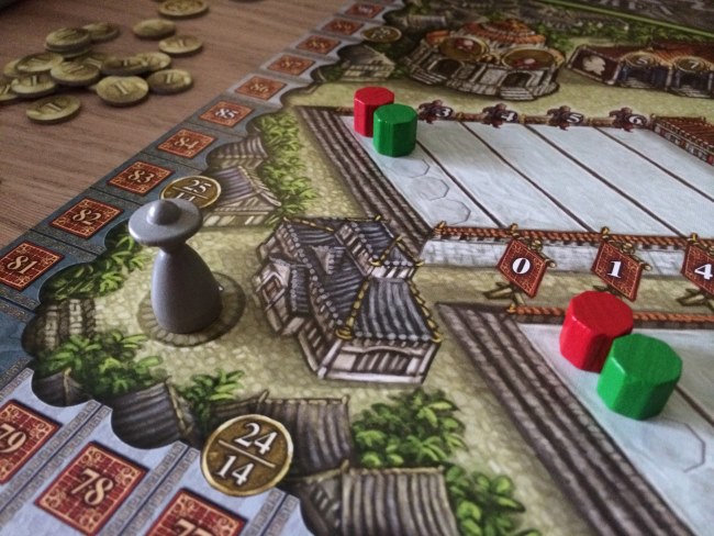 - la maison du dragon : les joueurs placés sur ce bâtiment payent le coût indiqué et avance leur marqueur influence d’une case
