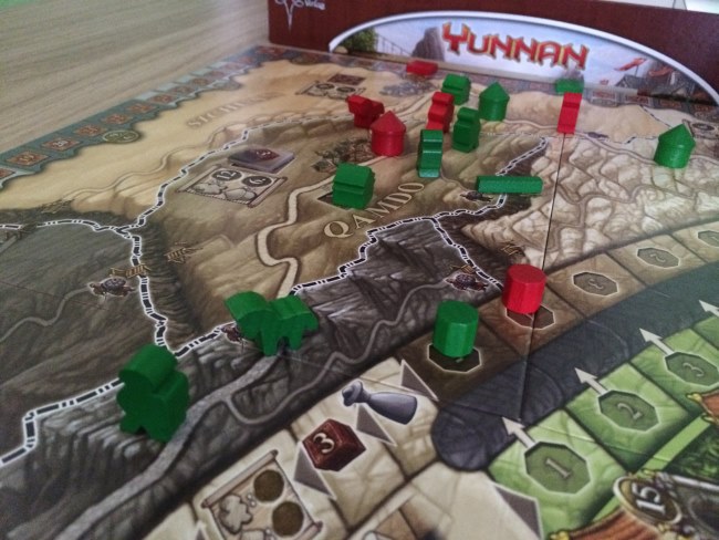Derrière cet exploit, il y a un thème particulièrement bien rendu. Quelques petits écarts pas très méchants sont visibles, mais le thème permet aux joueurs de s’investir et c’est justement grâce à lui que chacun fera l’effort de comprendre les règles, qui, une fois toutes annoncées (grâce à BGG), paraissent bien plus simples qu’au début. L’effort sera récompensé par un jeu qui demande du calcul immédiat mais de la stratégie à long terme aussi. Les phases diversifient parfaitement le jeu. Si Yunnan souffre de la sortie de poids lourds tels que Russian Railroads et Bruxelles 1893 il n’en reste pas moins un incontournable d’Essen 2013.