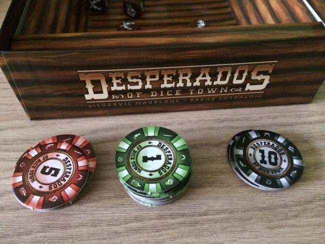 - Je pense qu’il faut faire deux ou trois parties pour adhérer complètement aux choix des auteurs (même pouvoir pour tous, sauf un… par exemple etc). Avec ces auteurs aux commandes, j’ai toujours cette impression de jeu abouti : Desperados of Dice Town ne manque de rien et n’a rien à envier, même à Dice Town (quoi que je lui préfère Dice Town mais il est différent)