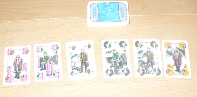 - Prendre au maximum autant de cartes ressources du type choisit visible au centre de la table que le nombre de carte ouvriers que possède le joueur. Les cartes prises au centre de la table sont remplacées, faces cachées.