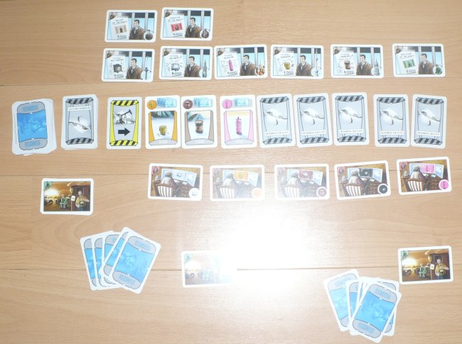 Les cartes Tradeurs et Investisseurs sont placées faces visible de façon à ce que chacun puisse voir leur pouvoir. Les cartes ouvriers, Ressources et Action forment chacune une pioche.