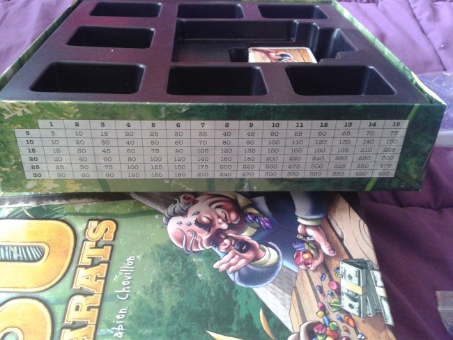 La belle boite éditée par Grosso Modo édition renferme 210 belles pierres précieuses en plastique divisées en 6 couleurs. De plus, il y a également 35 pierres précieuses jaunes symbolisant des pépites d’Or. A cela s’ajoute 6 paravents (1 par couleur) servant également d’aide de jeu, 18 cartes « transaction », 13 cartes « valeur secrète », 3 cartes « Matin, journée et soir » et 1 sac pour contenir les pierres précieuses de la banque. Mieux, si vous avez des amis néerlandais (vraiment ???) sachez que la boite française contient aussi la traduction des cartes « transaction » dans la langue de Willem-Alexander (C’est le Roi des Pays Bas, suivez un peu au fond ! 😉 ).