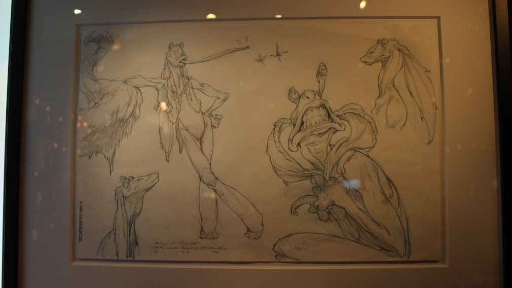 Une fois l’entrée passée, vous parcourez différentes salles vous livrant de nombreux secrets sur l’univers créé par George Lucas. On ne peut qu’être admiratif devant les recherches de créations qui sont présentées sous nos yeux. Des personnages en grandeur nature, des armures de Strom Troopers, des figurines d’aliens et de robots de toutes sortes, des maquettes de vaisseaux imposantes, des croquis, des vêtements, des accessoires, etc. Fans de Star Wars ou non, force est de constater que les artistes ayant contribué à cette aventure cinématographique se sont donnés à fond.
