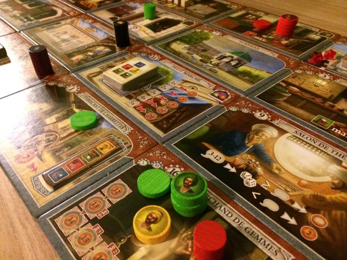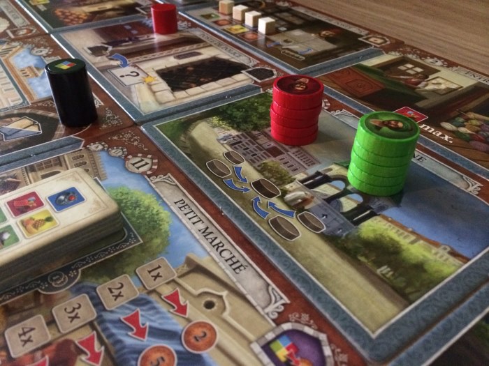 Hormis ces 2 cases « à chance » on va dire, tout le reste est calculatoire, c’est à dire 14 autres quartiers à visiter dans le bon ordre et rapidement car il s’agit bien d’une course aux rubis et pas d’une visite de courtoisie.