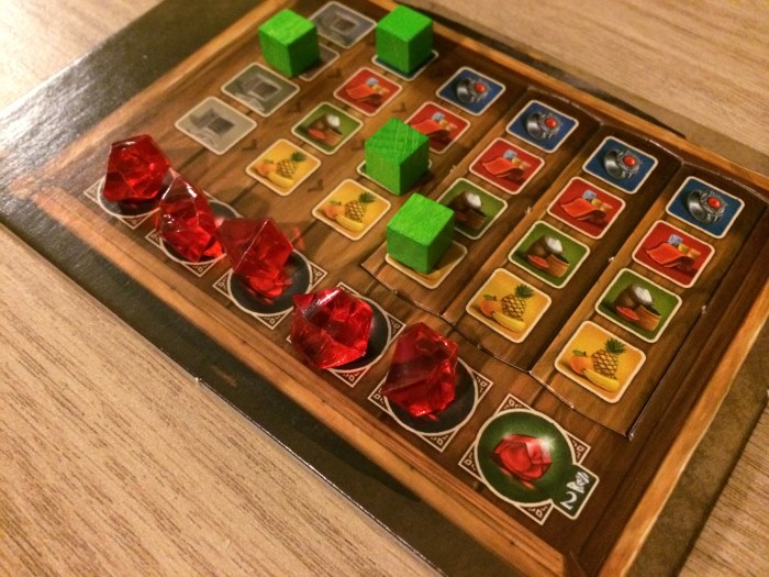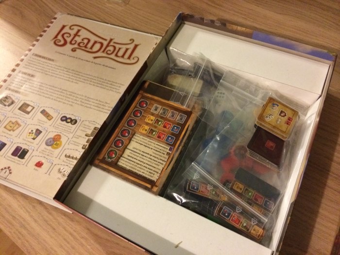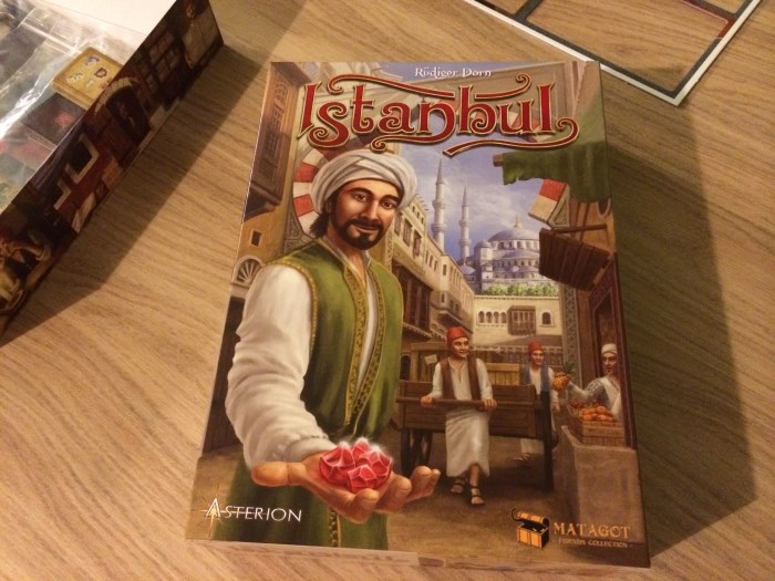 Istanbul était mon incontournable de ce mois d’Avril : le jeu à ne rater sous aucun prétexte ! Et tout ça uniquement pour sa mécanique : vous déplacez votre marchand et ses 4 assistants de 2 cases dans le bazar d’Istanbul et vous devez laisser un assistant pour faire l’action de la case… Sans assistant, vous ne pouvez plus vous déplacer ni aller à la fontaine (lieu de rendez vous) pour récupérer vos assistants.