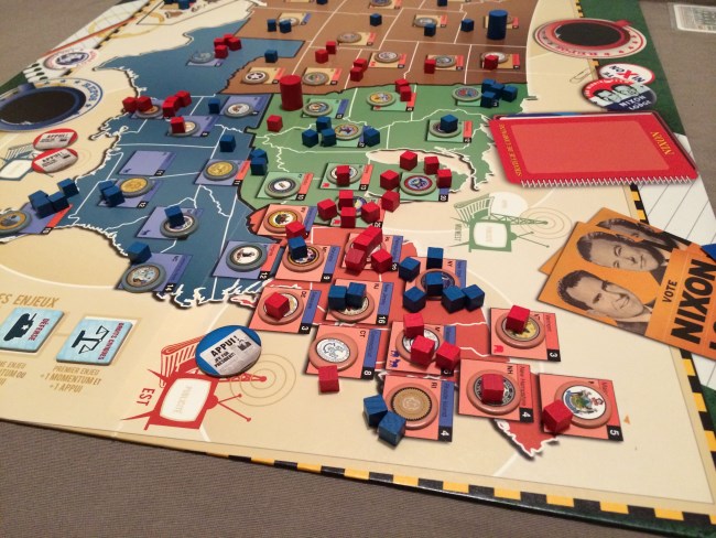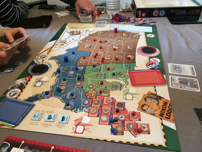 Merci à @vince_jeux pour m’avoir fait découvrir 1960 Kennedy vs Nixon : La victoire me semblait promise mais une série d’évènements survenus lors de l’élection font basculer la Californie et ses 32 grands électeurs ! Super jeu, très immersif pour qui aime le déroulement des élections US (ce qui est mon cas). Nixon a donc gagné l’élection de 1960, le programme spatial n’a pas eu lieu et les Russes ont donc été les premiers à marcher sur la Lune. Enfin, Kennedy n’était pas à Dallas en 1963 … #uchronie