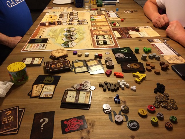 Robinson Crusoe ensuite : ouch ! Mon coop préféré reste Pandémie car j’ai trouvé celui-ci particulièrement ardu même si un coop est toujours appréciable et permet de faire une « pause » au milieu de gros jeux.