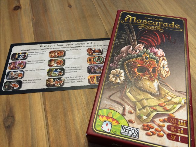 Règles expliquées en deux minutes, Mascarade propose de deviner les cartes de chacun au travers d’échanges, de défis et de bluff. Une chouette surprise, malgré que ce ne soit pas mon type de jeu. Son intérêt réside dans l’interaction. Pur bonheur si, en plus, vous jouez avec Alexis car sa bonne humeur et son débit de conneries contribuent grandement à l’ambiance.