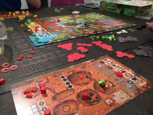 La partie de Myrmes restera peut être, avec celle de Terra Mystica, ma plus belle partie du weekend, même si notre déroute à Robinson Crusoé et mes parties de Concordia et Vinhos m’ont laissé de beaux souvenirs.