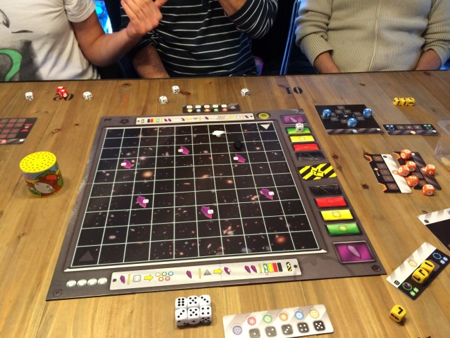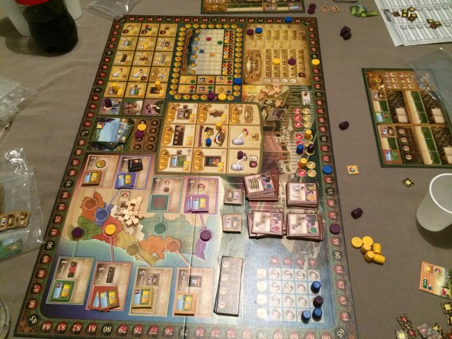 Ce jeu a bien plu ce week-end. Il a tourné deux fois : une fois à 4 joueurs, une fois à 5. J’avais déjà joué à 2 et 3 joueurs donc toutes les configurations sont bonnes. L’originalité de Istanbul c’est le déplacement de son marchand sur des tuiles représentant le bazar d’Istanbul. On s’y balade avec nos assistants qu’on laisse ou qu’on retrouve sur les tuiles pour effectuer les actions de la tuile. La course aux rubis se joue avec plusieurs possibilités et permet de diversifier grandement sa stratégie. Un chouette jeu.