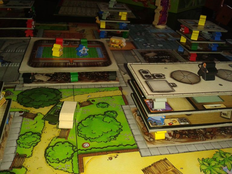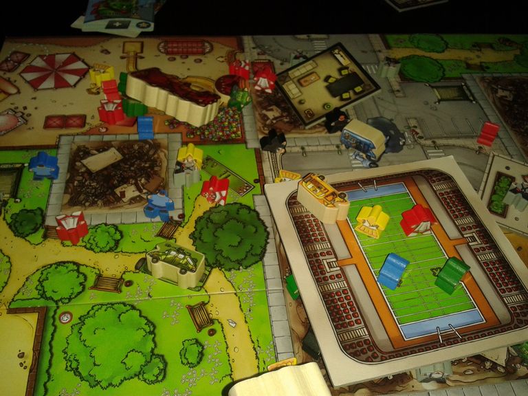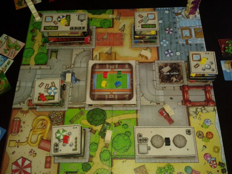 Il faut d’abord installer le plateau de jeu. Cette étape est un peu longue (il va falloir installer les 90 habitants de la ville), mais prenez patience, cela vaut le coup.