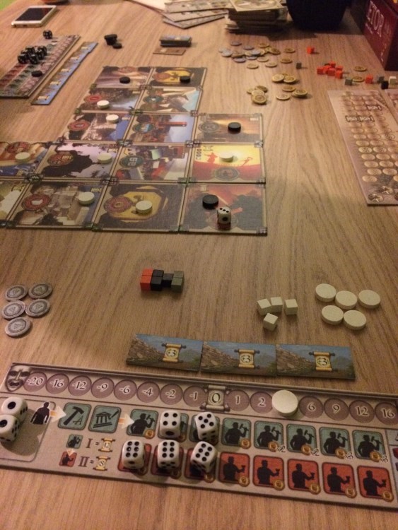En tous les cas, malgré des mécanismes éprouvés et donc pas forcément originaux (quoi que le système de retraite est très bon), j’ai beaucoup aimé le jeu. Et j’ai envie d’y rejouer. Le système de dés dont le chiffre est lié à l’expérience de l’ouvrier est assez plaisant, et colle au thème (pourtant un dé ne fait pas penser à un ouvrier). Bref, ce n’est pas le jeu du siècle mais un gout de reviens-y est assez présent pour ma part. Les avis sont par contre un peu mitigé autour de la table, certains n’ont pas aimé du tout le définissant de froid, d’autres ne l’ont pas trouvé passionnant (voire triste) et moi j’ai aimé. OK je dois être la seule. Bon, entre Citrus et Preator mon coeur balance LOL
