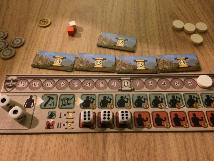 En 117 de notre ère, dans l’empire romain, [ZZZZZzzzz, ho pardon] l’empereur Hadrien envoie des ingénieurs et leurs consultants construire des villes, édifier des fortifications et bâtir le fameux mur d’Hadrien. L’ingénieur qui aura obtenu le plus de faveurs de l’empereur (sous forme de points de victoire) sera nommé Praetor par l’empereur.