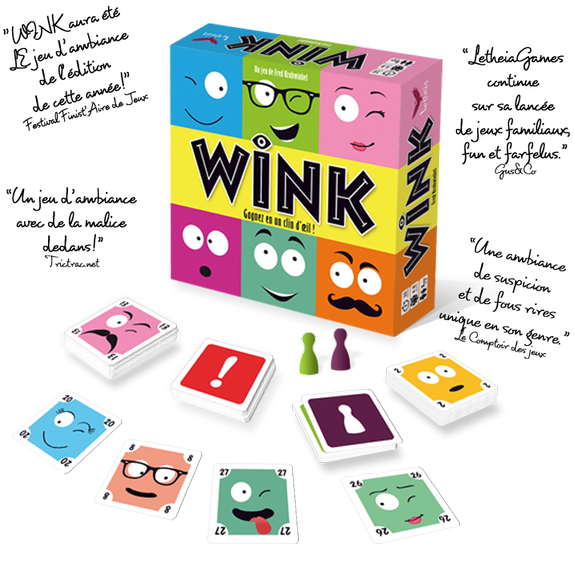 Fous rire garantis, on passe son temps à s’observer les uns les autres, pour intercepter les clins d’œil de ses adversaires et pour faire signe à ses partenaires… Il n’est pas rare de penser voir des clins d’œil là où il n’y en a pas et le plus terrible est de sortir un carton pour un clin d’œil nous étant destiné… A chaque fois qu’un joueur annonce le bon partenaire pour son tour de jeu, on se demande comment est-il possible de n’avoir rien vu !