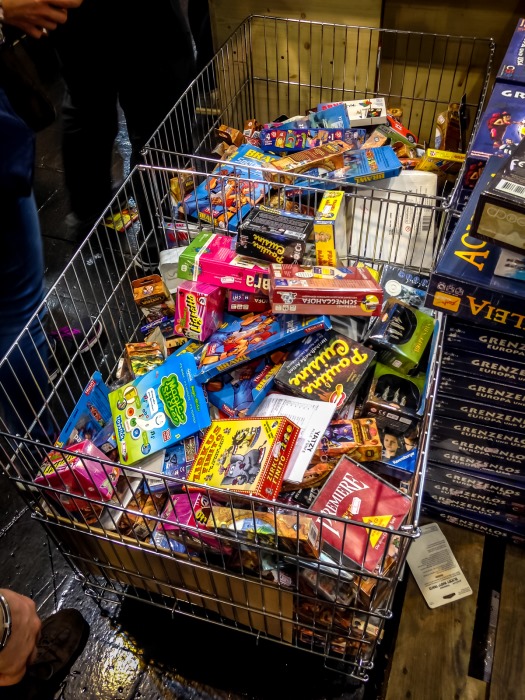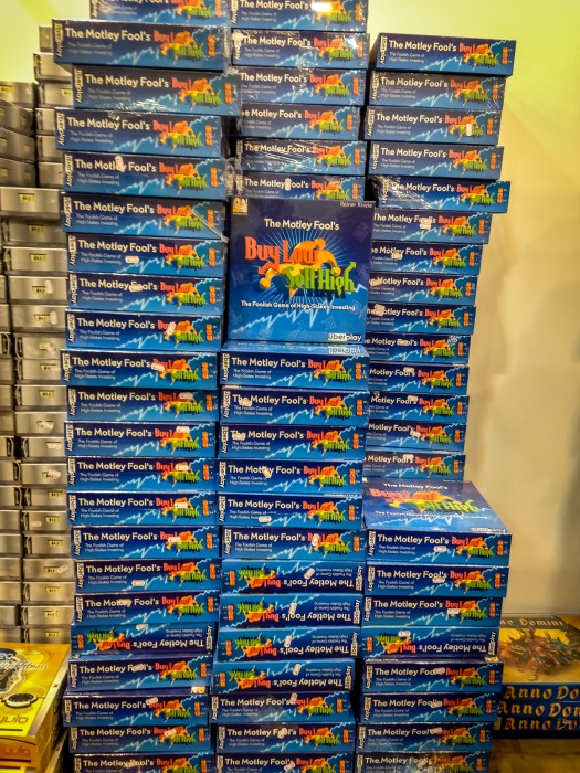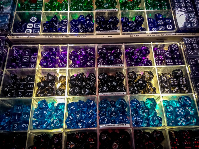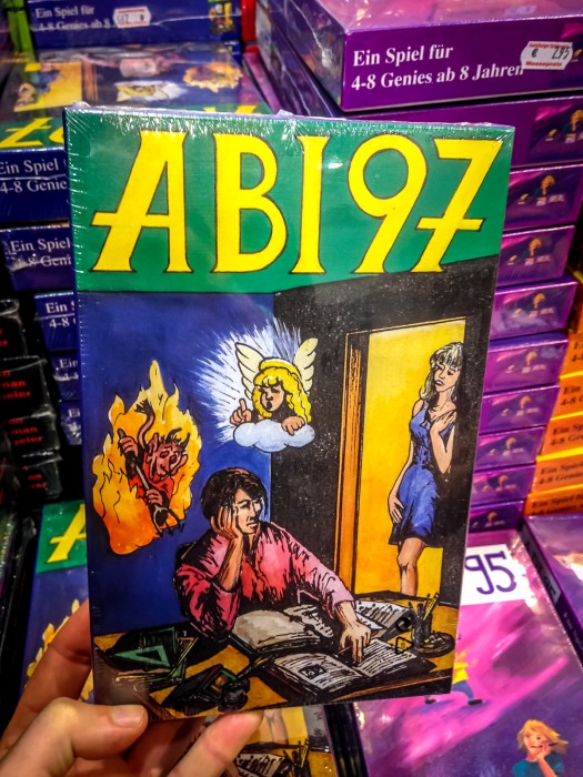 Je me risque aussi à un passage dans l’abîme, le stand de destockage, aux cloisons fermées, qui a sa propre file d’attente. Au bout de ce lugubre étalage de palettes remplies à la gorge de jeux paria, des paniers en métal, qui contiennent la lie de la lie des jeux mal vendus. Je n’ose y toucher, et je sors indemne de ce couloir de la mort ludique, talonné par des allemands en cosplay très réalistes de buveurs de bière. Le temps de faire un dernier tour, de voir les Feld, d’avoir les yeux qui piquent, de refaire un tour, de se retenir d’acheter des daubes, de faire la clôture en compagnie de Ludovox, en proie à l’ire des cerbères du Messe pour libérer la place avant la cohue du Week-End, je refais encore un tour, je me remplis de cette expérience bizarre, de cette frénésie non-sensique d’adultes passionnés, de ces destins qui se jouent dans des salons VIP, de ces artistes, auteurs, éditeurs, distributeurs et joueurs qui donnent chacun un sens à tout ça.
