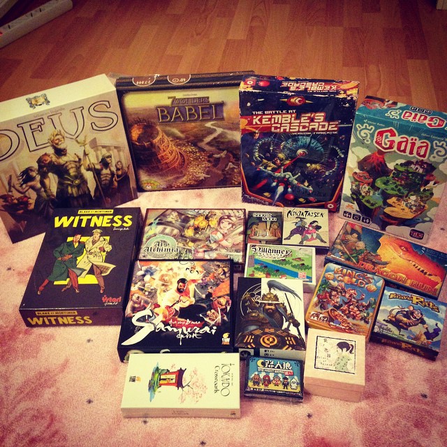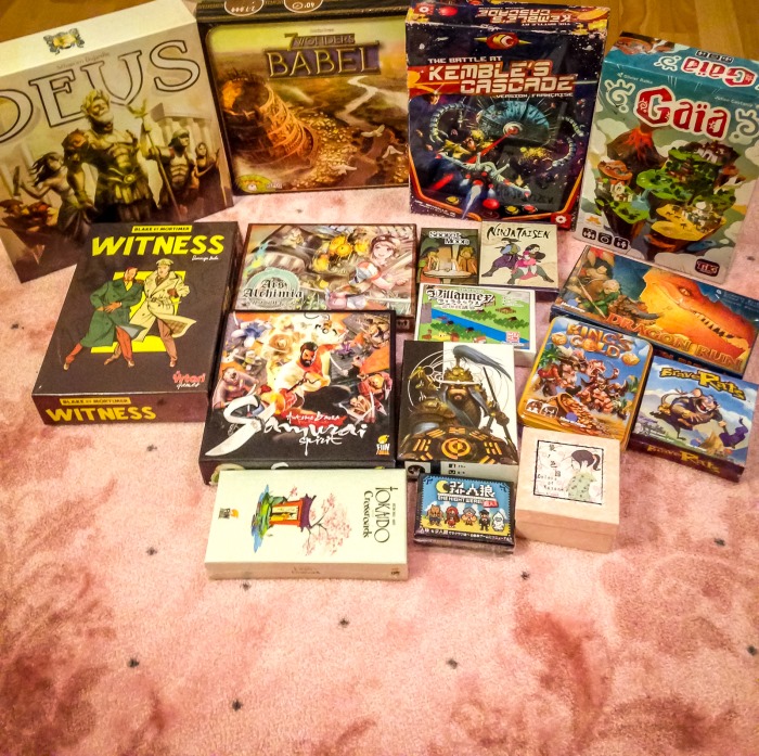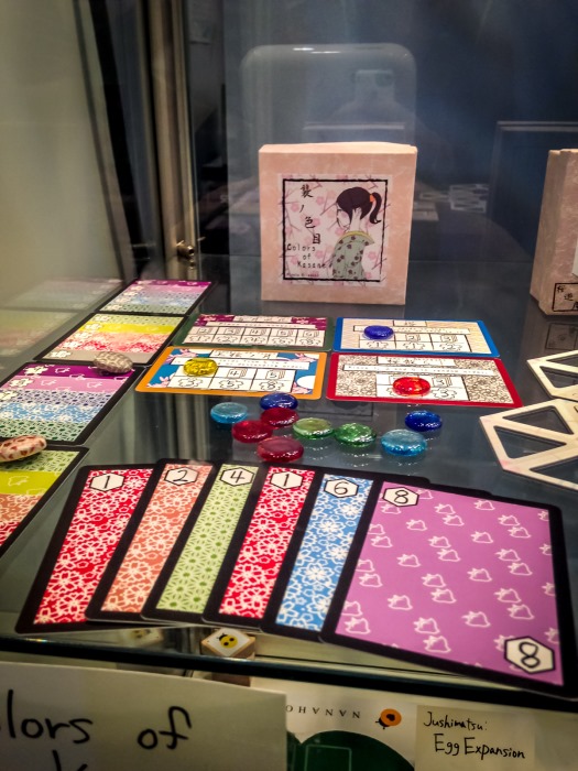 Un vegan-burger plus tard je profite de la digestion des omnivores pour ne pas faire la queue au stand de Japon Brand et récupérer les merveilles de design que sont Colors of Kasane, Villanex, Ninja Taisen, Ars Alchimia, Lost Legacy, précommandés depuis longtemps (clin d’oeil Izobretenik). La majorité de ces jeux est déjà sold-out pour le public.