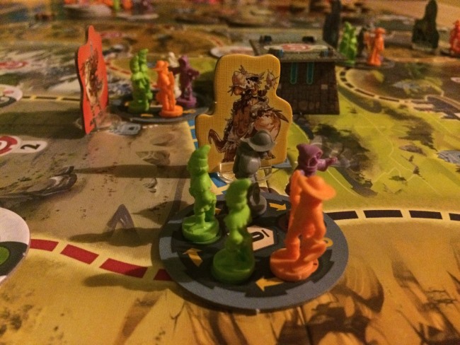 • Chaque tuile cités vidées (parce qu’il n’y a plus de recrutement possible ou parce que la menace a été éliminée) est remplacée par une autre tuile sur une autre cité. Si la pile des menaces est vidée, attention ce  sera des colosses qui apparaîtront mais y’aura du renfort. Je vous laisse découvrir, je vais pas spoiler hein