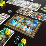 Le prochain Pearl Games, Deus, s’explique très vite mais n’en reste pas moins profond. A votre tour de jeu, vous choisissez de construire un bâtiment / temple en payant son coût, en gagnant son pouvoir et en vous plaçant sur le plateau, ou bien vous choisissez de faire une offrande aux Dieux. Savoir quand faire une offrande semble être le sel du jeu. On peut aussi attaquer les villes voisines. Bref, mon coup de coeur de cette année je pense.