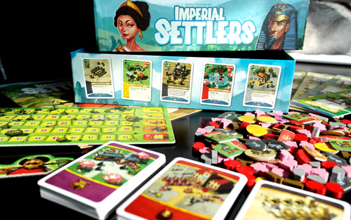 J’aime les jeux de What’s your game, donc je ne vais pas me passer de celui-ci. Pour 2 à 4 joueurs, disponible uniquement en anglais (mais matériel sans texte et règles VF trouvables), ce jeu propose de jouer par tout une carte soit sur votre plateau personnel pour augmenter votre pouvoir dans l’empire, soit sur le plateau de jeu pour recruter la main-d’œuvre, construire des bâtiments pour satisfaire l’empereur, appeler des renforts ou déplacer les armées de royaume en royaume. Le jeu est déjà en précommande (disponible mi-octobre) chez Philibert
