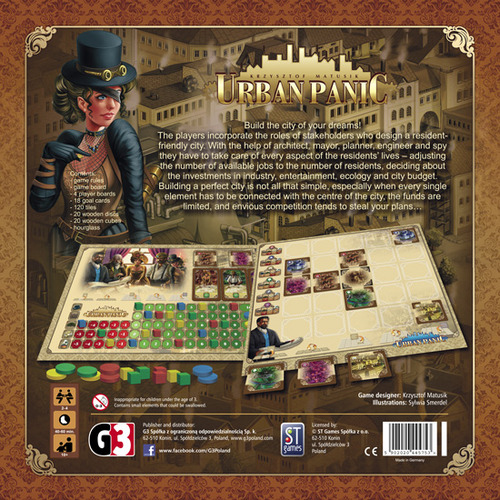 Jeu de placement de tuiles au look ma foi très attirant [ça a toujours eu de l’importance pour moi, hormis pour Keyflower]. A l’aide de 5 personnages (maire, architecte…), on va devoir construire la ville la plus confortable, écouter ses résidents et vaincre le chomage ! Ca me semble d’actualité. A tester avant d’acheter évidemment, mais 2 pages de règles, j’adhère ! Urban Panic est disponible chez Philibert (donc pas forcément besoin d’aller le chercher à Essen)