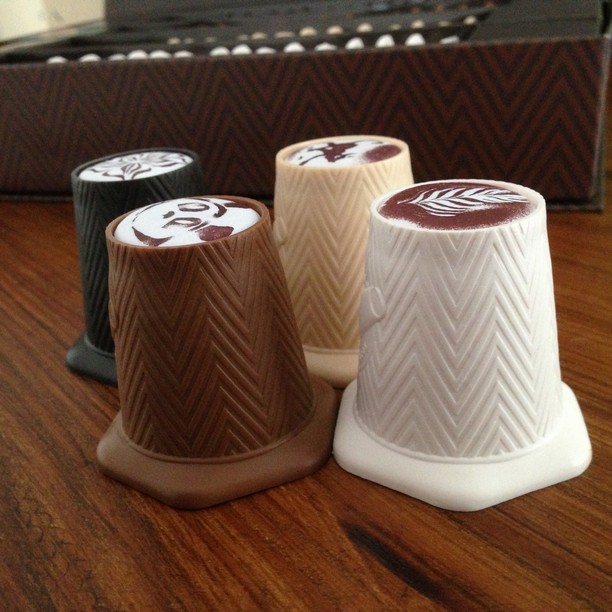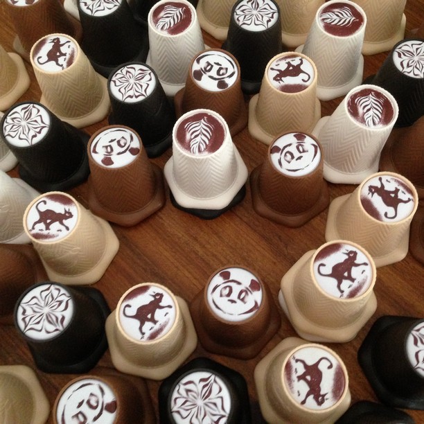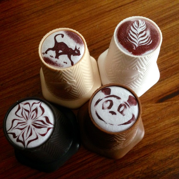 Les petits clins d’œils se sont glissés en haut de chaque gobelet pour les rendre plus identifiables : du latte art, un chat (kiki la petite sorcière?) ou le panda de Takenoko (forcément un panda ça attire!! Malin ^^).
