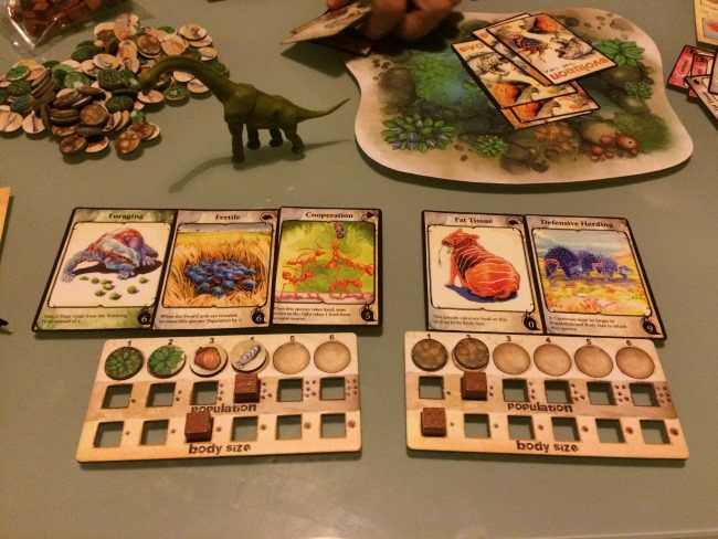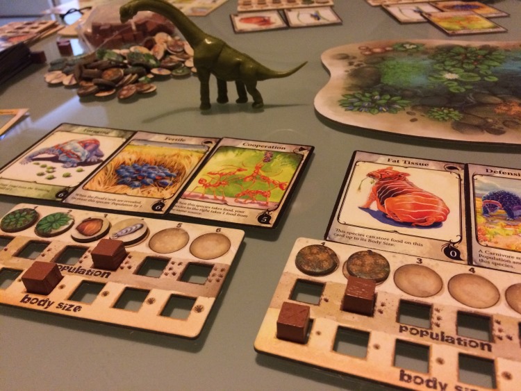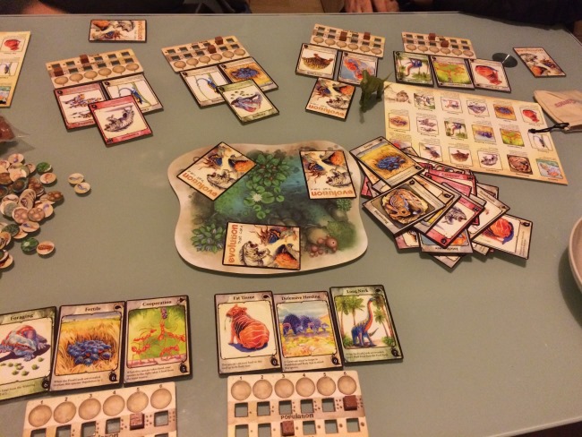 Alors au début j’étais très enthousiaste sur ce jeu. Assez original sur la mécanique et le seul objectif : nourrir ses espèces. D’autant que si l’on a des espèces carnivores on aura tendance à mettre peu de nourriture au centre.