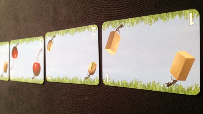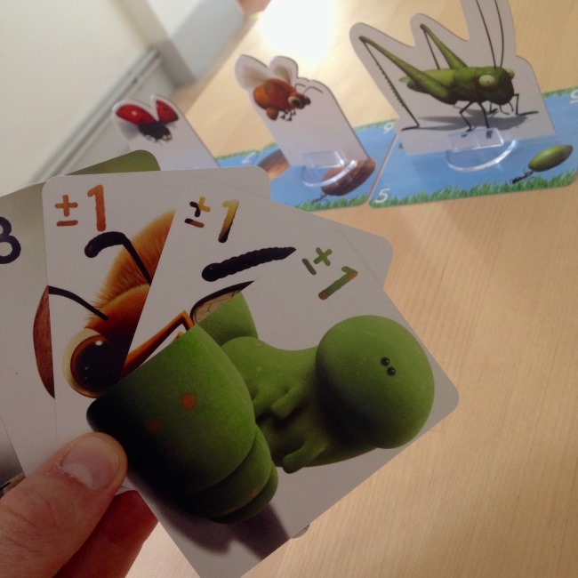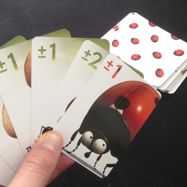 Le jeu se veut très accessible, vous allez recevoir deux cartes paris : elles vous indiquent quels sont vont insectes fétiches pour la partie. En fonction de leurs positions finales, vous marquerez vos points. Celui qui obtient le meilleur score est donc le grand gagnant. Okay c’est assez simple. Mais comment qu’on fait ? On va également vous distribuer 6 à 8 cartes (en fonction du nombre de protagonistes autours de la table). Ces cartes vont vous permettre d’avancer ou de reculer telle ou telle bestiole. Et la partie s’arrête lorsque toutes les cartes ont été jouées.