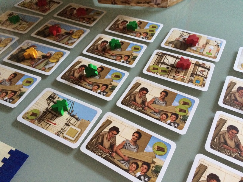 Je ne suis pas d’accord sur le manque d’originalité, pour moi l’intérêt du jeu provient de l’ouvrier en bas d’une colonne. Ce n’est pas sa pose mais bien son activation qui déclenche la défausse de la colonne. C’est une position importante et originale, car les ouvriers de la colonne sont bloqués et peuvent être éjectés sans avoir agit.