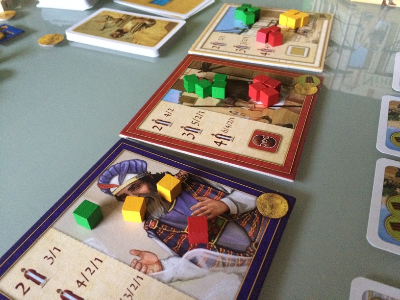 Le jeu est sommes toutes assez pauvre pour les pousseurs de cubes en bois, mais il s’avère quand même efficace en famille. Plus facile que Istanbul, à peu près pareil que Targui, il va devoir faire sa place parmi les jeux de placement d’ouvriers pour débutants.