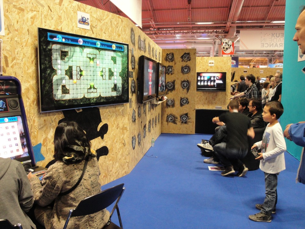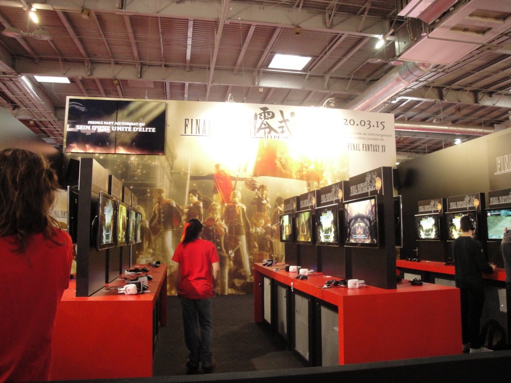 J’ai d’abord été surprise, agréablement, par la déco ; on peut dire que pour les stands, les exposants ont mis le paquet ! On arpente les allées, les yeux écarquillés, on a presque peur de rater un événement mais le cri des joueurs nous attire autour d’un tournoi en cours ou bien qu’un exposant balance des goodies (qui manquent même de blesser certains visiteurs).