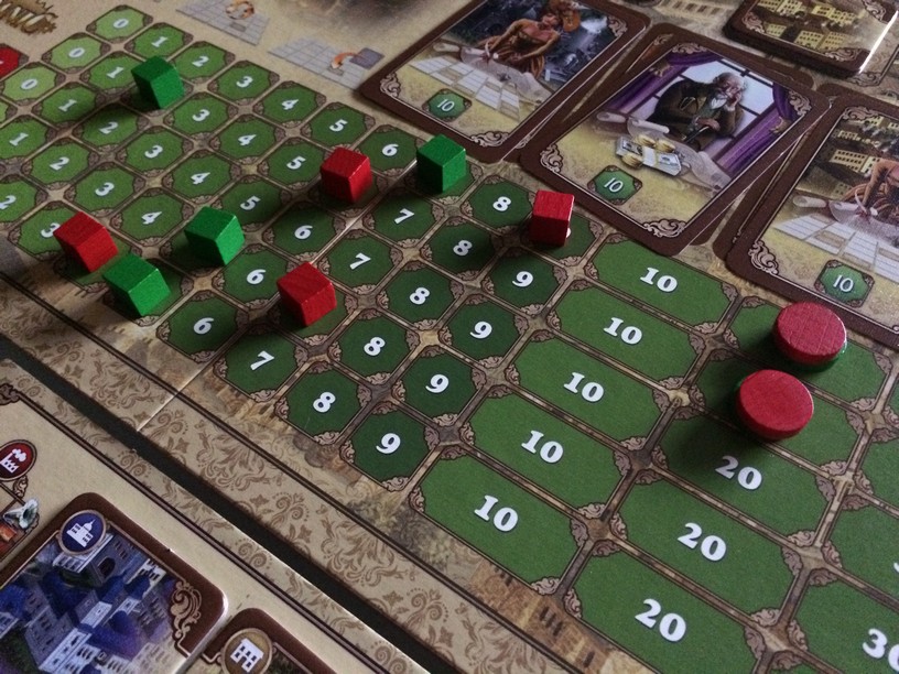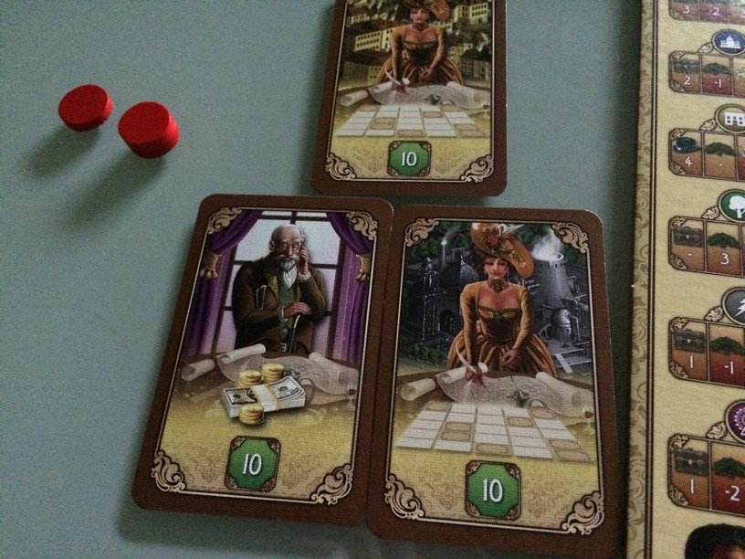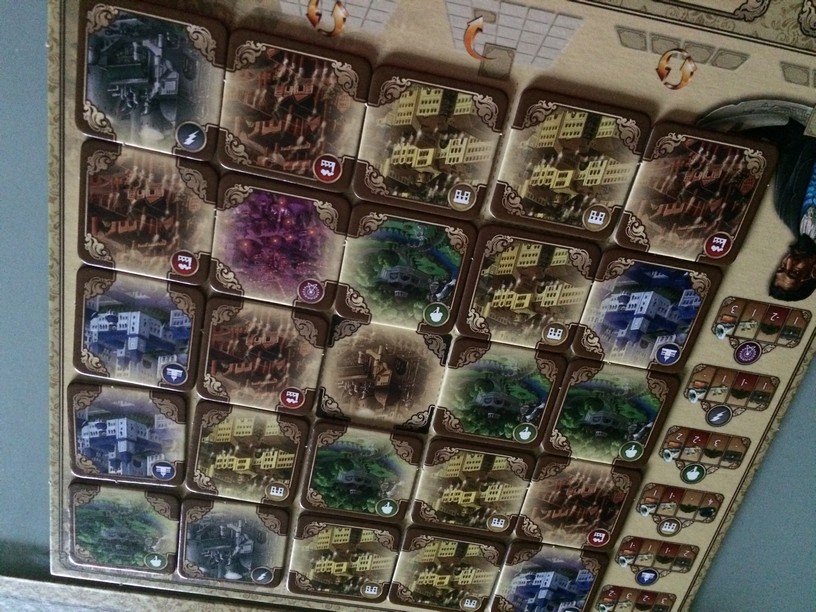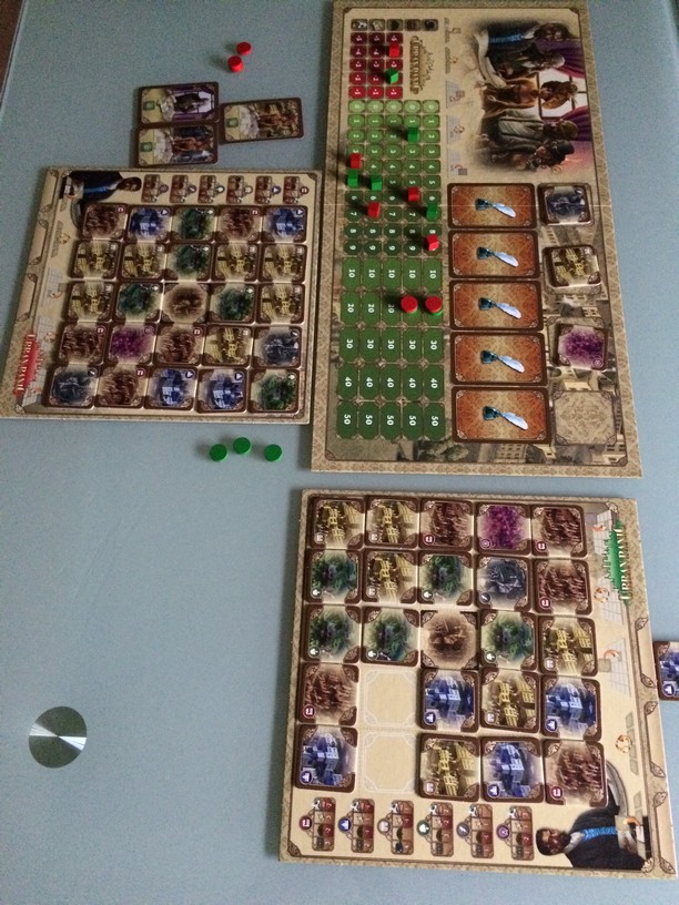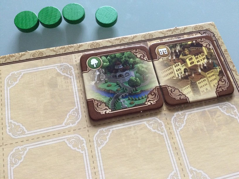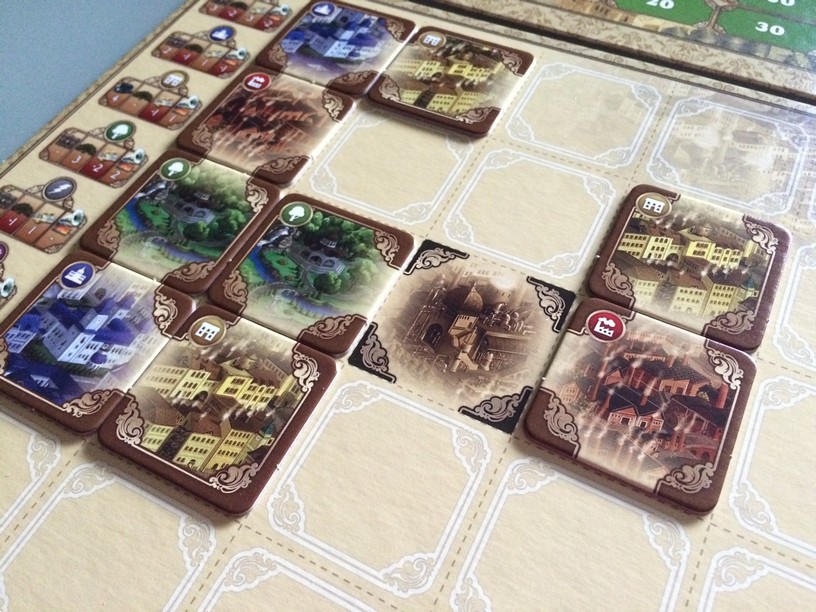Il propose aux joueurs de construire la ville avec le plus d’influence (population, revenus, travail,…). A votre tour , vous devrez faire 3 des 4 actions : récupérer une tuile, la poser, changer les tuiles visibles, échanger une tuile placé par une tuile de votre réserve. Un mode avancé permet d’avoir des objectifs et de piquer des tuiles dans la réserve du voisin (plus fun). En posant vos tuiles vous allez bouger vos marqueurs d’influence. Celui qui a le plus de points (en addition marqueurs, tuiles posées, objectifs) remporte la partie.