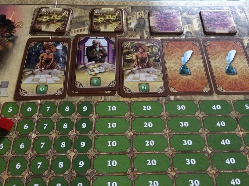 Derrière des illustrations qui forcent le respect se cache un jeu familial de pose de tuiles qui n’a pas le fun de Carcassonne (hors son mode real time) mais qui pousse le calcul aussi loin que lui. Les objectifs permettent d’orienter la partie, il y a en plus des limites à ne pas franchir (vous ne pouvez pas poser toujours les mêmes tuiles qui font remporter le plus de points car elles baissent vos points ailleurs et vous ne pouvais pas avoir moins de -5 sur vos marqueurs).