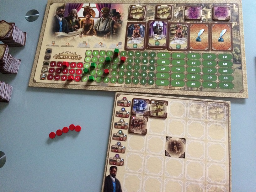 On aurait aimé plus d’interactions, plus de diversité dans la position et les points octroyés par les tuiles, peut-être aussi des conditions de récupération des tuiles …  Le jeu est juste simple et efficace, n’apportant rien à ce qui existe, et clairement trop pauvre pour moi. Les tours se répètent inlassablement et pourtant il y aurait de quoi faire pour l’améliorer sans pour autant le rendre trop difficile. En plus difficile, on a déjà l’excellent Suburbia, dont le concept est le même et pour 3 euros plus cher que celui-ci.