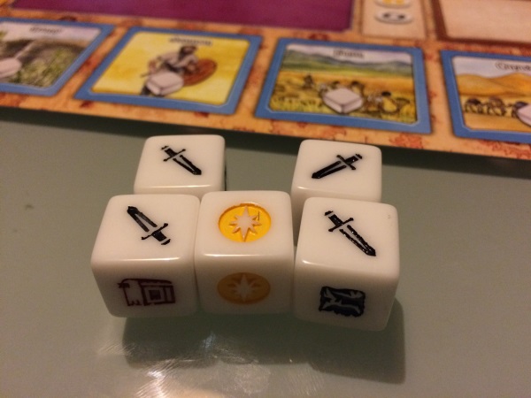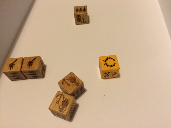 Un tour de jeu donne 3 lancers à chaque joueur. Ces dés vont permettre d’augmenter les ressources, construire, développer la technologie, récupérer de la nourriture … Le hasard ici ne fera pas rire tout le monde mais quelques éléments permettent de gérer les dés néfastes (ou du moins d’en réduire les dégâts). Ceci dit, c’est plutôt à vous de tirer profit de vos dés et d’être le plus malin.